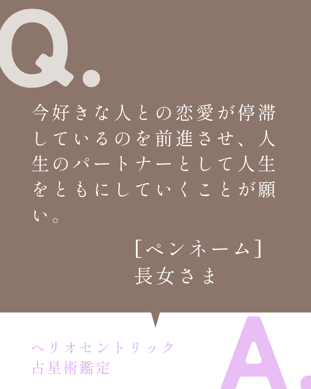 「好きな人との関係が停滞している。この恋愛を前進させ、人生のパートナーにしたい」